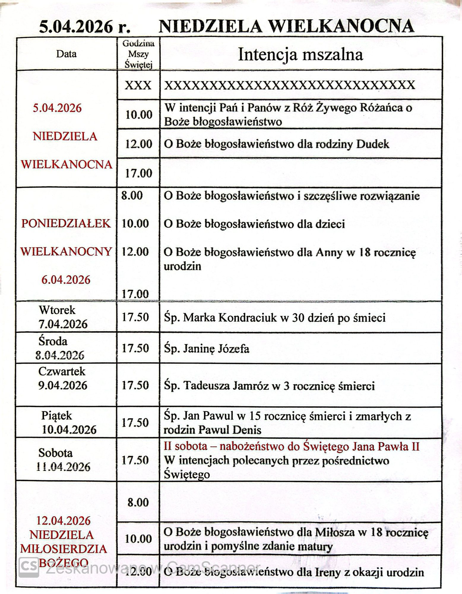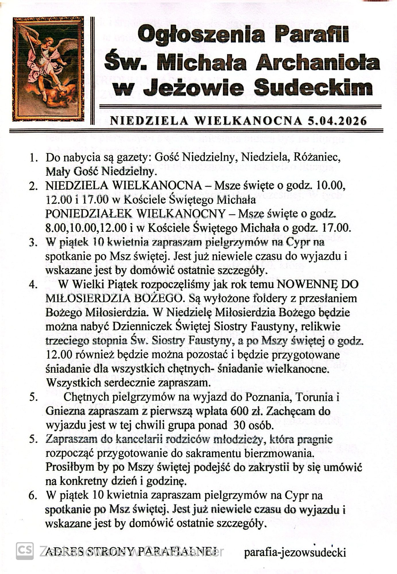 Strona główna » Aktualności – nieuzywana » Ogłoszenia parafialne 5.04.2026Ogłoszenia parafialne 5.04.2026 poprzednieOgłoszenia parafialne 29.03.2026DalejNiedziela Miłosierdzia
