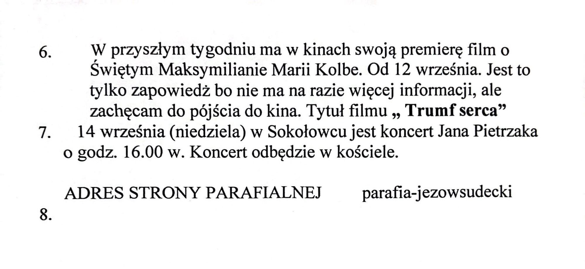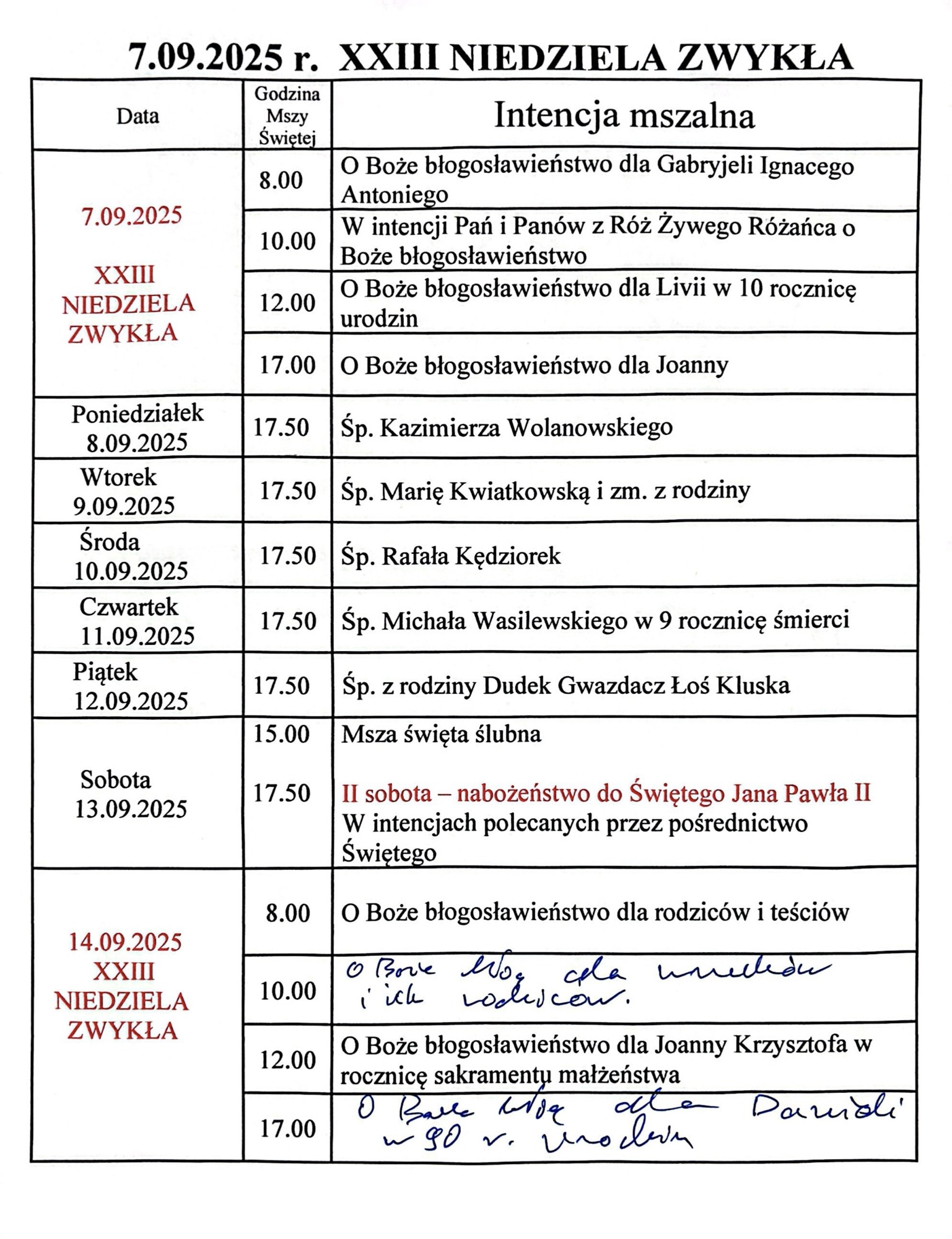 Msze Święte: NIEDZIELE: kościół św. Stanisława: 8.00, 10.00, 12.00; kościół św. Michała Archanioła: 17.00. DNI POWSZEDNIE: kościół św. Stanisława: 17.50